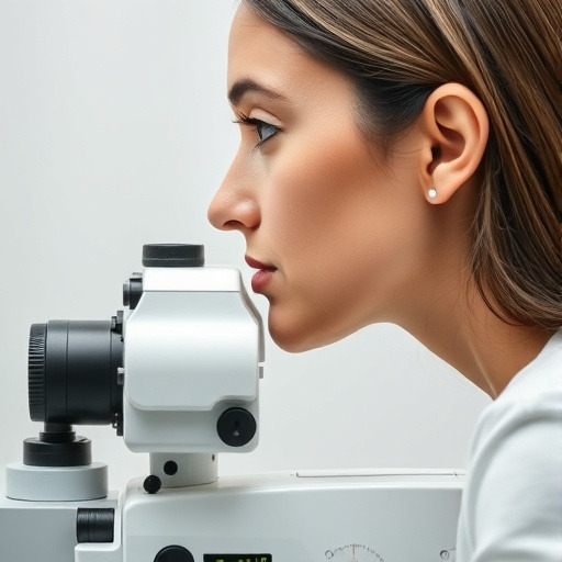 기계가 렌즈를 자동으로 조절하며 눈의 초점을 맞추는 동안,
